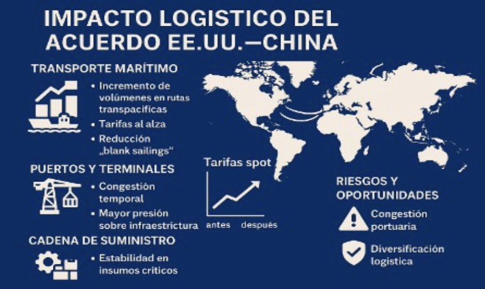 - Congestión temporal: Fenómeno de frontloading (adelanto de pedidos) genera saturación en puertos clave como Los Ángeles, Long Beach y Shanghái.